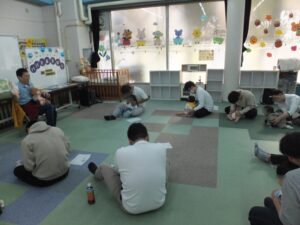父子で60分間たっぷりと遊んでいる間、ママたちはヨガでリフレッシュをされていました。
