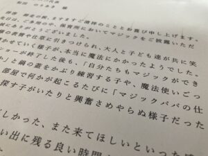先日は、ご多用の中、保育所においてマジックをご披露いただき、誠にありがとうございました。